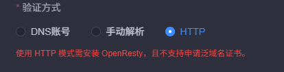 琢磨来琢磨去,已经半夜11点半了,实在没辙,只能在1Panel尝试:把验证方式从 DNS 切换成 HTTP。虽然HTTP验证没那么灵活,虽然这样不能申请通配符证书,但胜在简单直接,成功率高,以目前来看是最稳妥的办法。