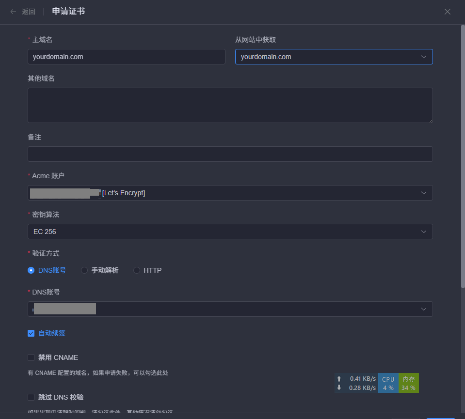 1panel默认勾选自动续签,这样等证书到期会自动申请续签,无需手动干预