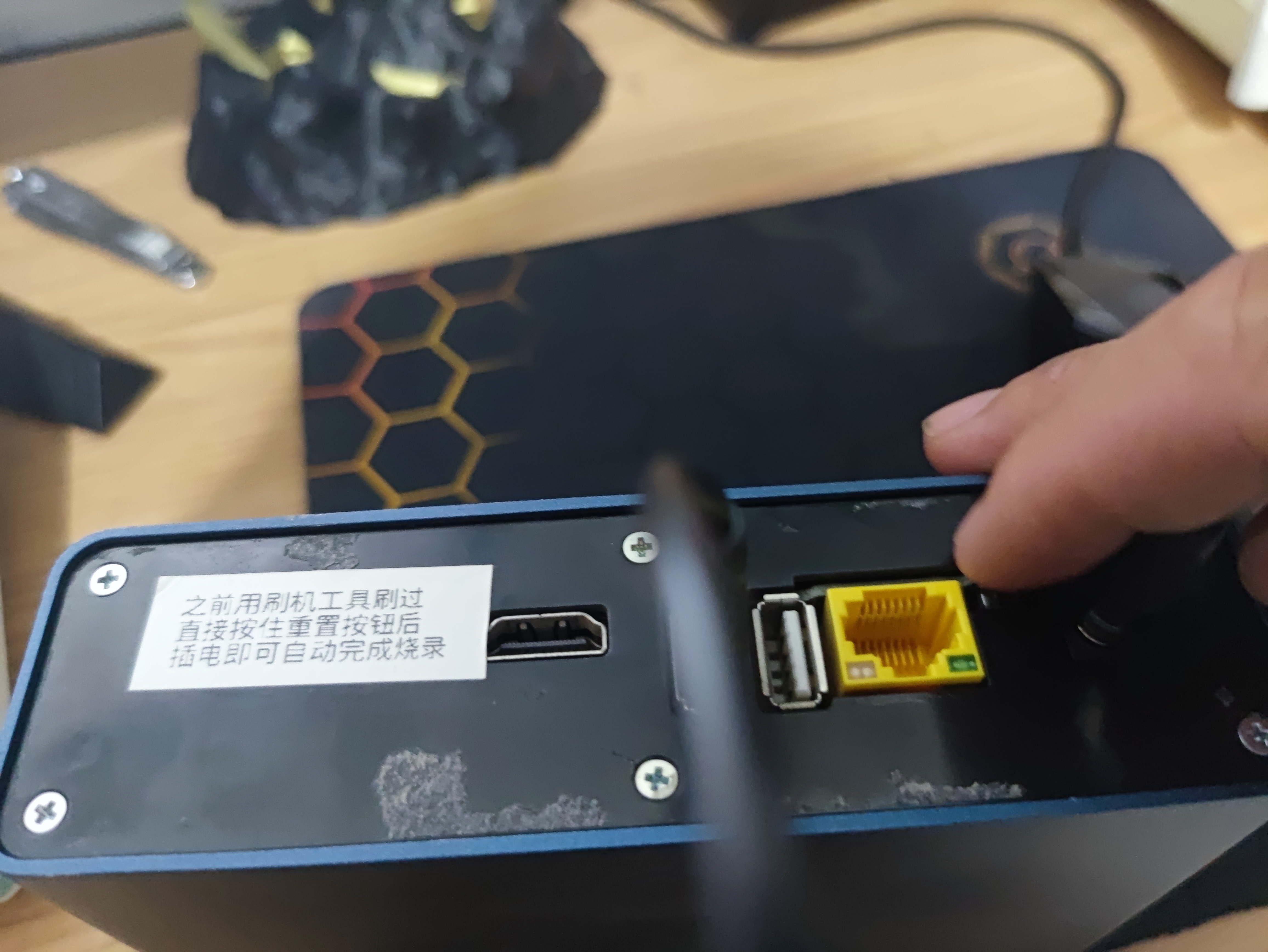 拔掉USB线,插上网线,重新插拔电源线,等待启动