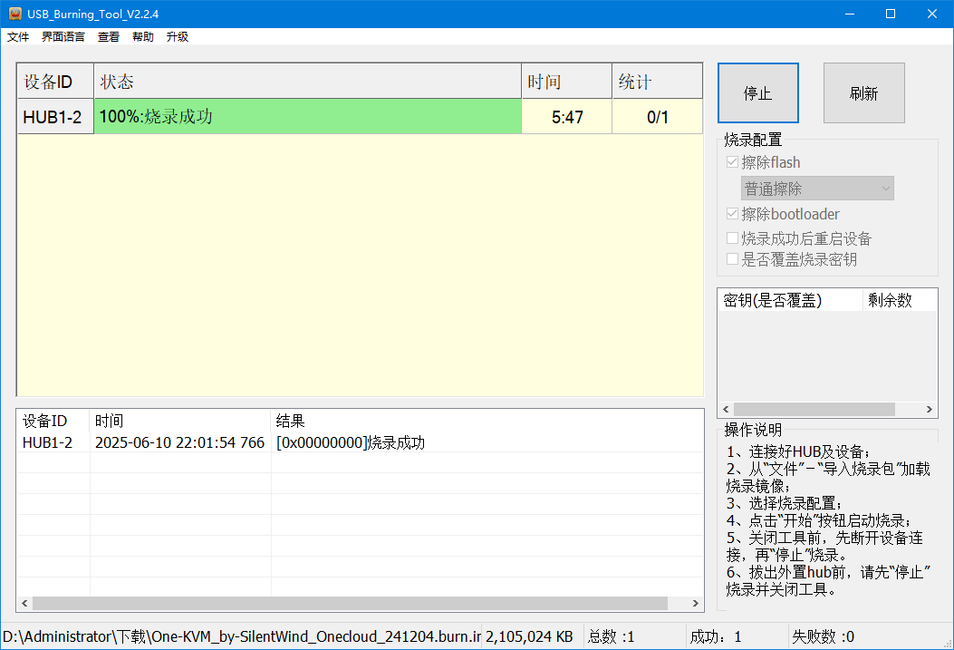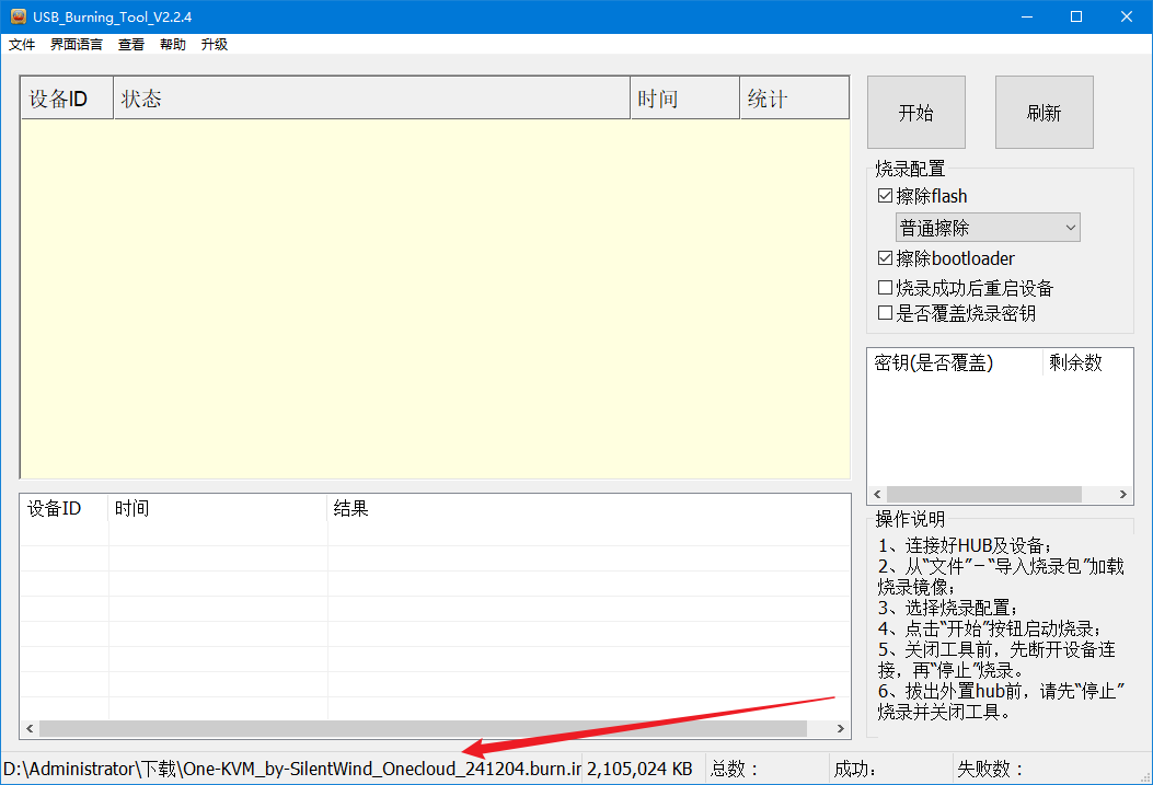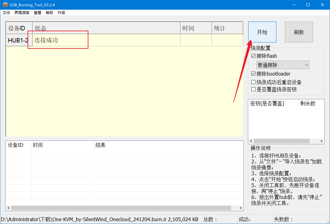 此时我们会看到设备已连接,可以开始烧录镜像了