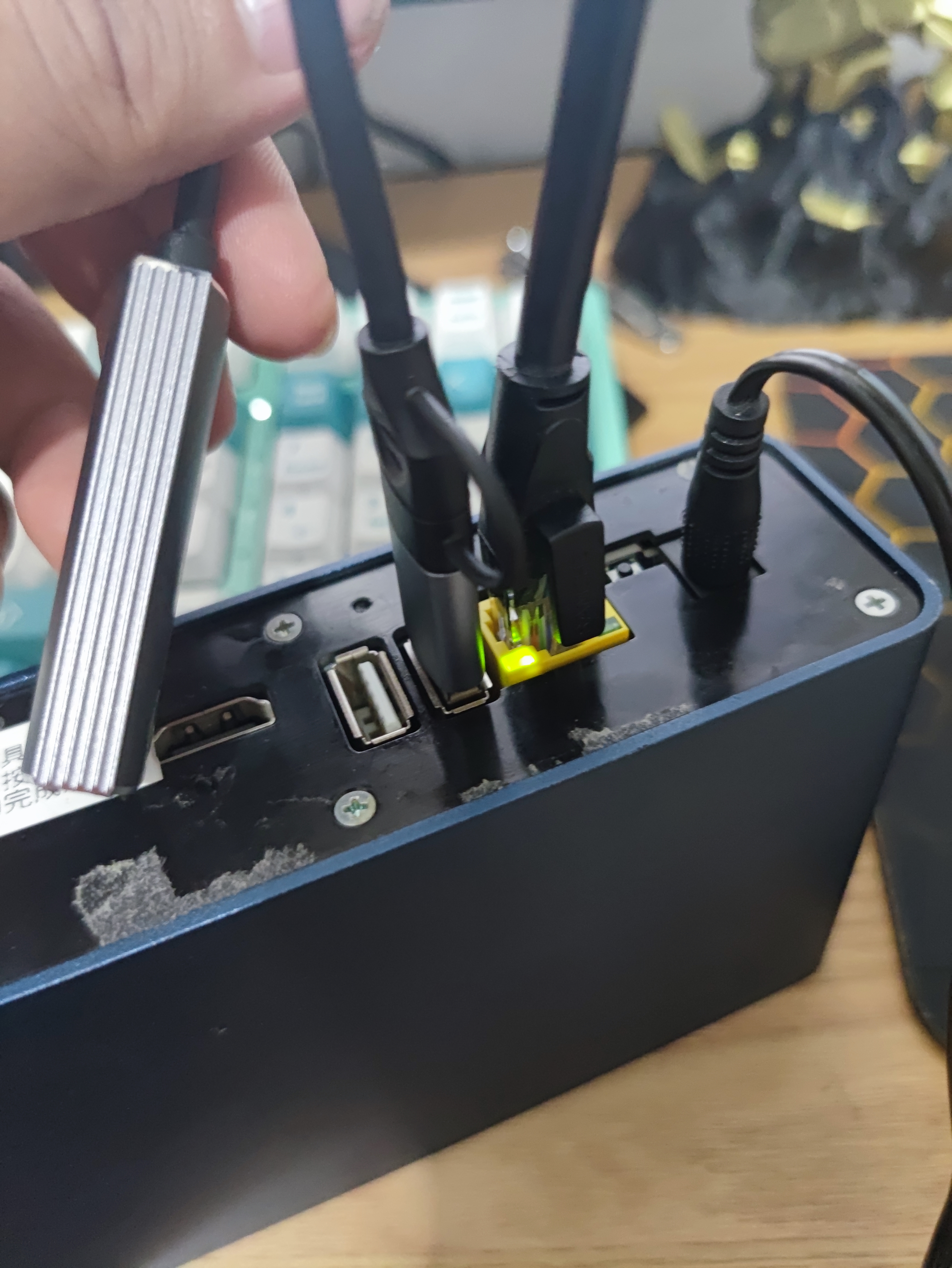 将采集卡的USB插入到靠近网口这个USB母口位置