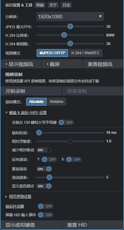 把视频模式从H.264 / WebRTC切换到MJPEG / HTTP