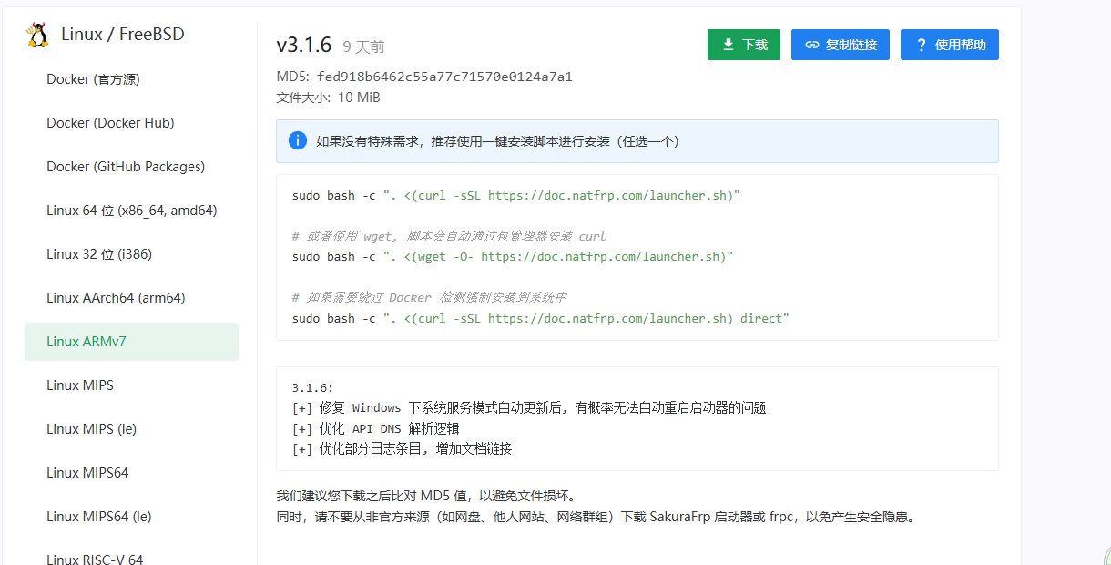 这次,我用的是SakuraFrp,主要还是SakuraFrp支持armv7和命令行安装