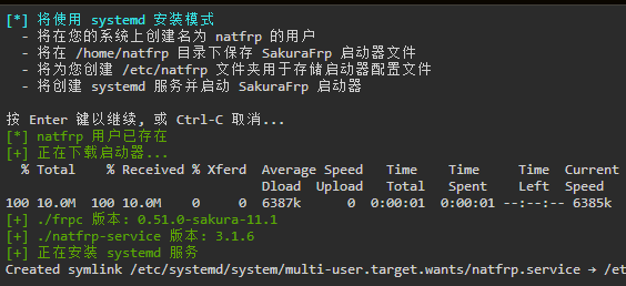 sudo bash -c ". <(curl -sSL https://doc.natfrp.com/launcher.sh) direct"OK,可以了