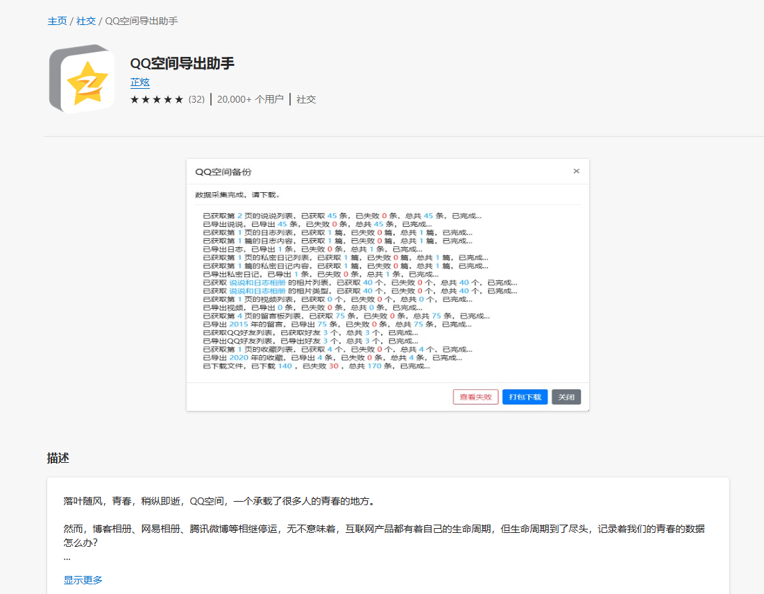 经过逐步搜索,最终在edge扩展商店找到了QQ空间导出助手: