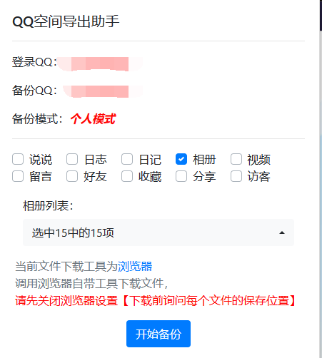 这款由芷炫大佬开发的插件不用登录也不用下载,只需要打开你网页端的QQ空间,扩展就会自动抓取你的相册列表